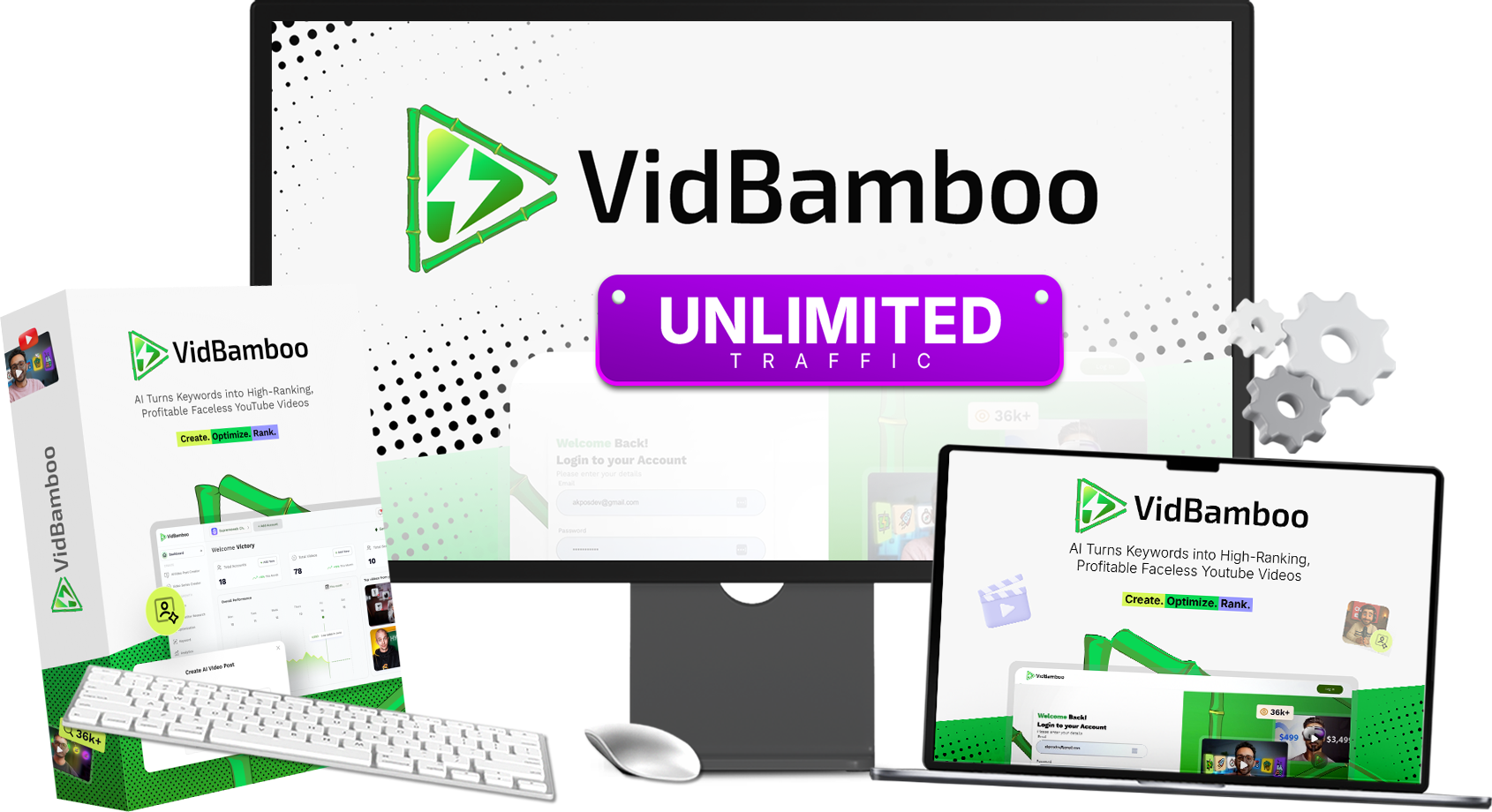 VidBamboo is a smart A.I tech that takes care of all the steps needed from 0 until you rank on youtube and get traffic, adapting to the different trend and algorithm changes.